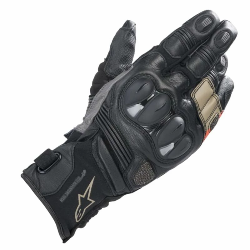 Alpinestarsย Belize V2 Drystar Motorcycle Gloves (Black/Sand/Red Fluo)