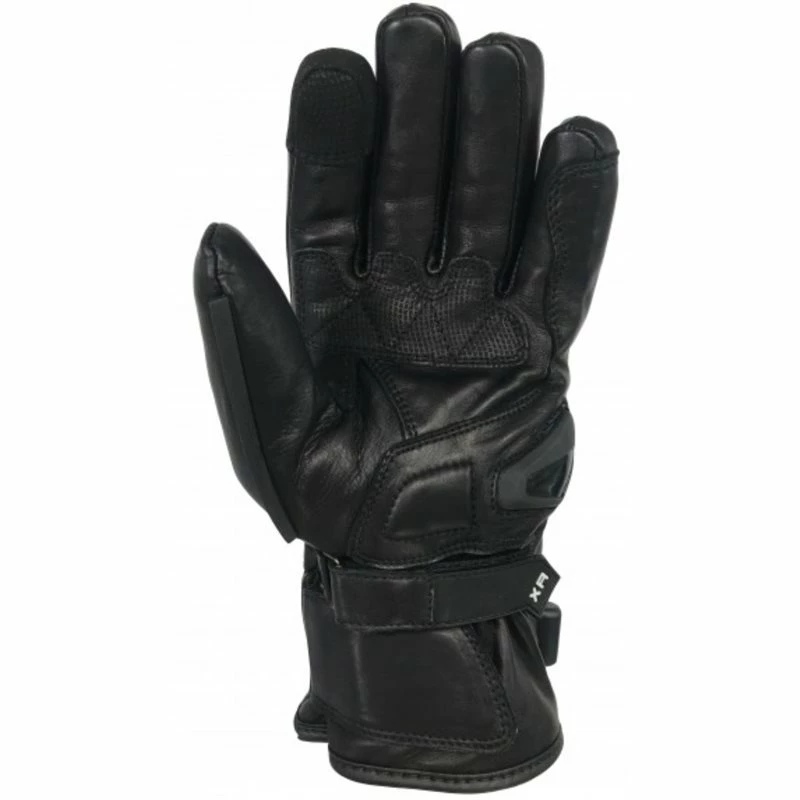 The power input plug is fixed on top of each glove and is designed to be connected through the Gerbing Long Y-Cable to the 12v battery of your vehicle through the supplied Gerbing battery hook-up. Like all our gloves, the XR Glove can also be powered directly through the integrated cuff plugs of the Gerbing Heated Jacket Liner. Due to the shorter style of this glove it is unsuitable for use with portable batteries. The XR gloves have the same knuckle protection as the XRL gloves. Our new Gerbing MicroWireProยฎ is incorporated throughout the whole hand, fingers and thumb. The integrated push button controller allows the wearer to regulate the temperature to suit their requirements. The XR glove has a waterproof Hyporaโข membrane within the layers of the glove meaning that even if the rain should penetrate the leather, your hands will be kept warm and dry. As with all leather goods, we recommend treating your gloves regularly with a leather protector such as Nikwax. This not only extends the life of your glove but also helps to keep the outer layer water resistant. The XR Glove comes supplied with a power connection kit. This contains a battery hook up cable and a Long Y-cable. Any additional cables required can be bought separately.