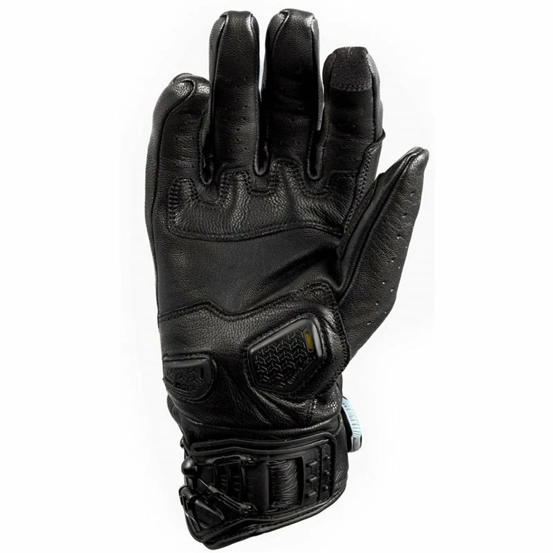 Superior comfort is delivered via wrap round seamless finger ends. Meanwhile the strong goat skin palm has a soft memory foam double layer on high wear areas and also utilises the patented Knoxย Impact Scaphoid Protection System (SPS) on the palm, which incorporates Micro-Lock technology for added impact absorption. The SPS eliminates the grab effect that occurs when a leather palm makes contact with the road, and in turn reduces the risk of hyper extension which can be the cause of a broken scaphoid.