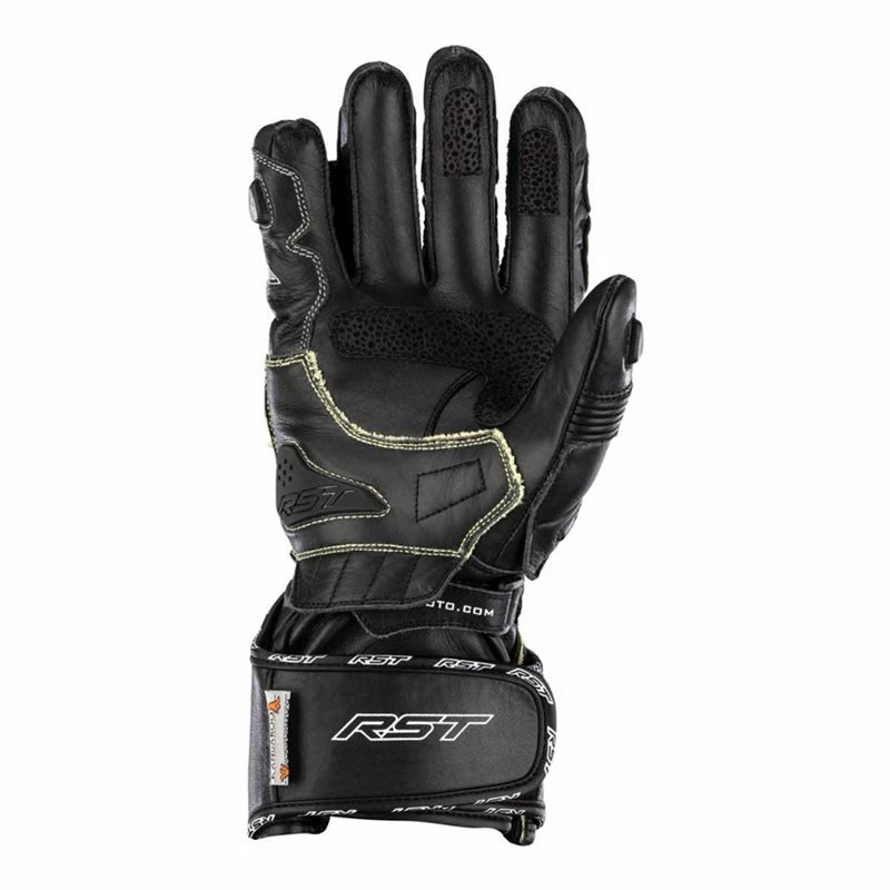 Made with both full-grain cowhide and kangaroo leather, the glove features a CE Level 2 Carbon Knuckle Protector for impact protection. DuPontโข Kevlarยฎ Fibre on the palm stitching and underlay, along with double layer kangaroo leather and an RST palm slider protect the palm in the event of a high speed slide, while the double wrist and cuff closure offer a secure fit. DuPontโข Kevlarยฎ lining throughout the rest of the glove prevents tearing, and elasticated conjoined fingers to prevent โfinger rollโ without affecting reach or flexibility when changing gear.